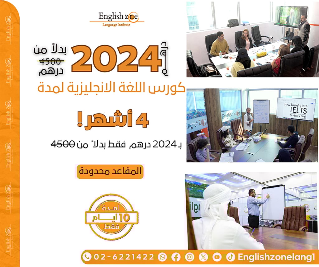 كورس اللغة الانجليزية لمدة أربعة أشهر بـ 2024 درهم فقط