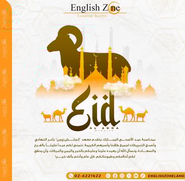 في الختام، يسر معهد إنجلش زوون للغات أن يشارككم فرحة عيد الأضحى المبارك، ونتمنى للجميع عيداً سعيداً مليئاً بالخير والبركات.